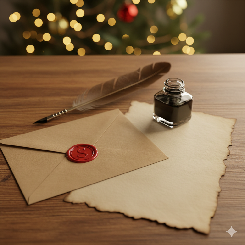 - A Fully personalized letter from Santa on premium old age parchment paper